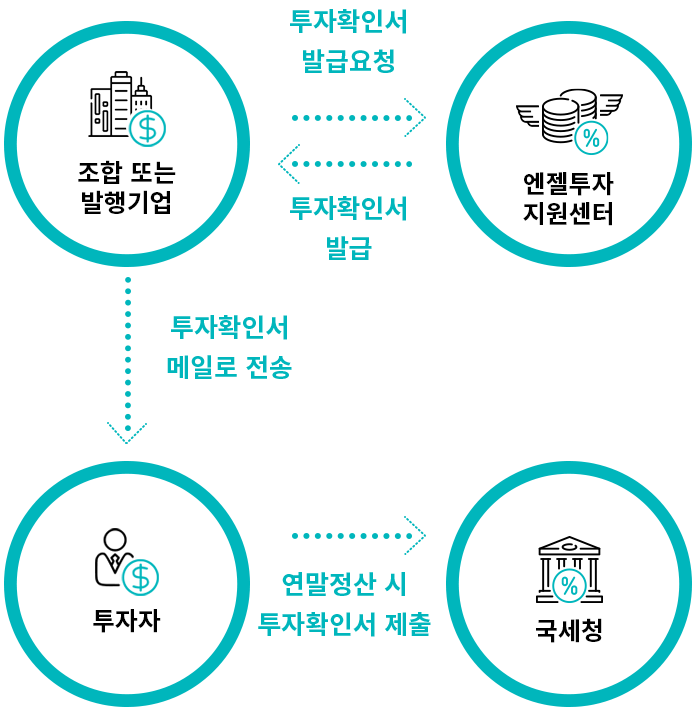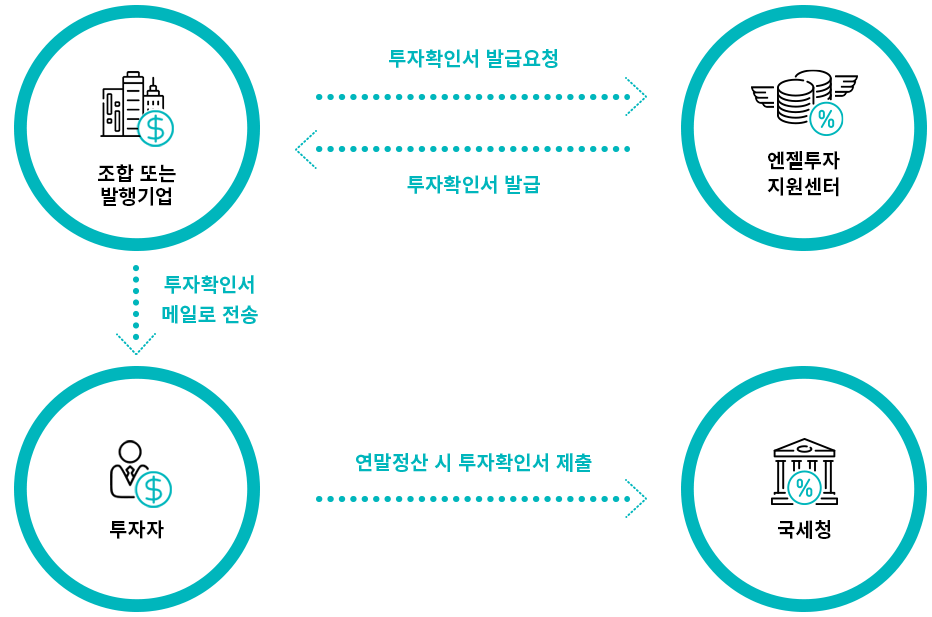 투자확인서 신청을 투자 당해의 종합소득과세표준 확정신고 전에 완료하여야 합니다.